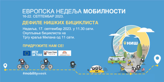 U okviru Evropske nedelje mobilnosti Grad Niš, Udruženje biciklista „Karavan tim“ i EU info kutak Niš organizuju „Defile niških biciklista“ u nedelju, 17. septembra 2023.